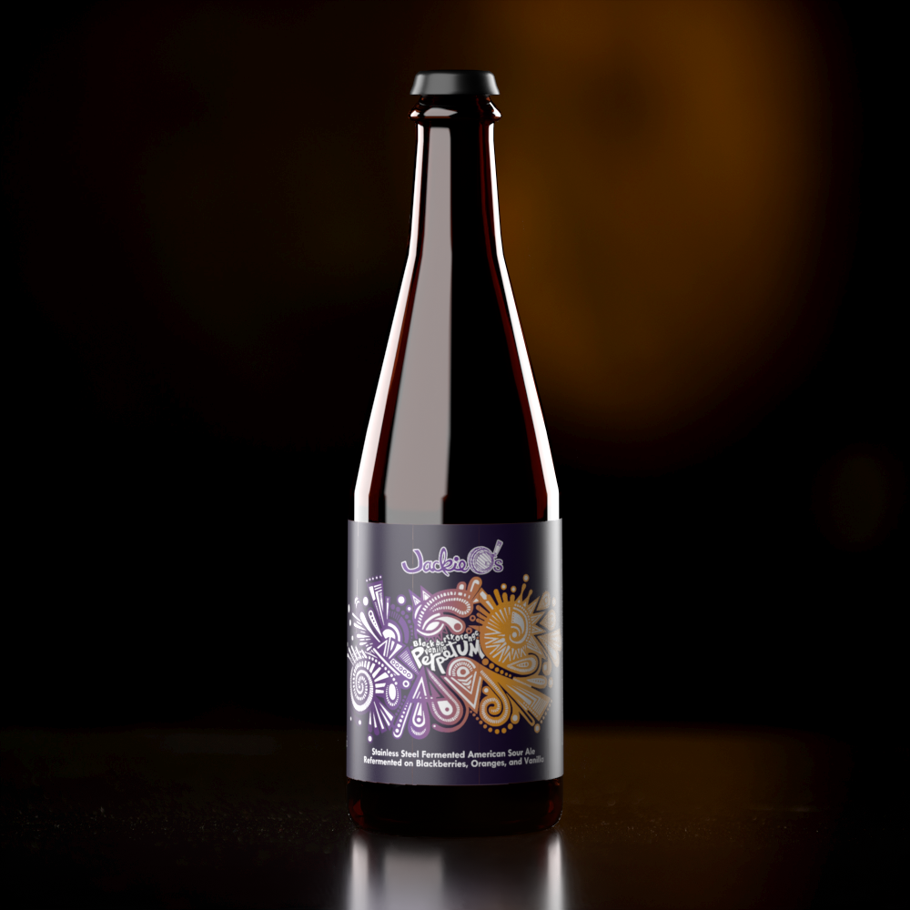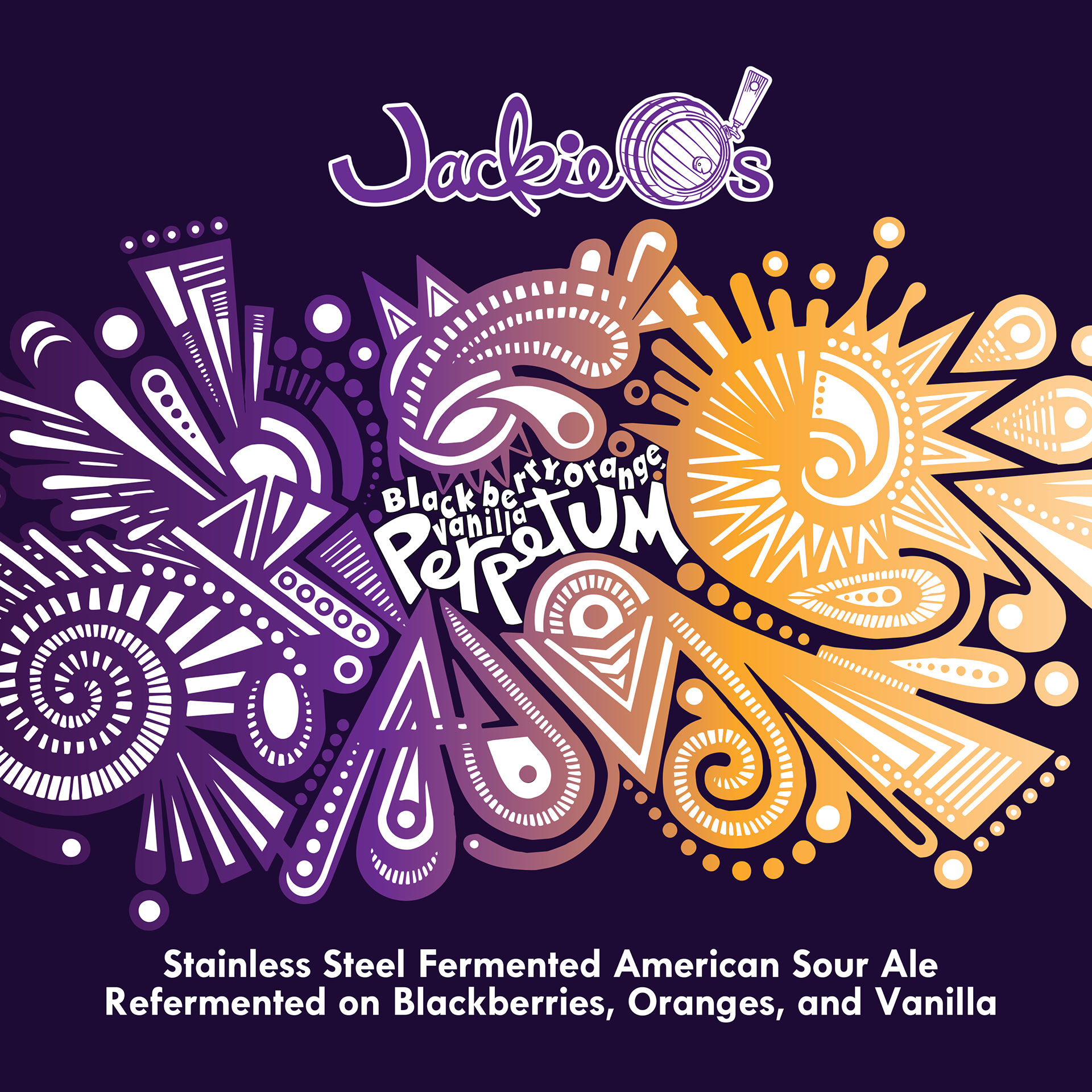 Description: Stainless steel fermented American Sour Ale refermented on blackberries, oranges, and vanilla..