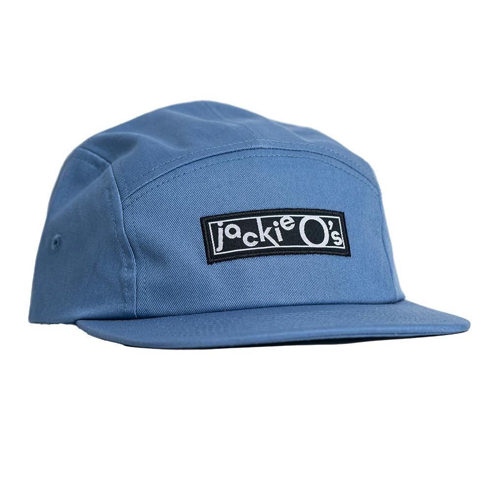 Adjustable 5 panel slate blue hat with the Jackie O’s logo in white and black on the front. Small “drink beer made here” tag on the back near the adjustable strap. One size fits all.