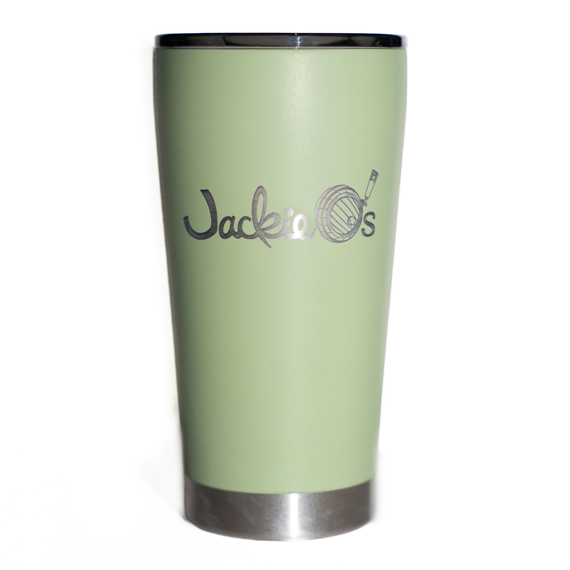This light sage green 16oz insulated tumbler has the Jackie O’s logo lazer engraved on one side! Ideal to use as your everyday coffee cup or enjoy a cold one on a hot summer day. The 16oz tumbler is designed to fit comfortably in your hand and most car cup holders. HAND WASH ONLY.